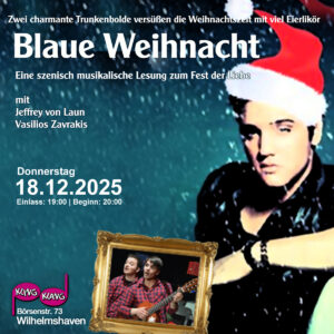 Der Musikclub Kling Klang präsentiert am Donnerstag, den 18.12.2025 die Blaue Weihnacht, bei der zwei Schauspieler sich alle Jahre wieder treffen um sich und Ihrem Publikum die Weihnachtszeit zu versüßen