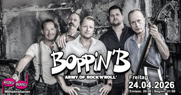 Boppin’B sind DIE erfolgreichsten Repräsentanten und Botschafter des Rock N Roll und Rockabilly in Deutschland und kehren am Freitag, 24.04. endlich wieder zurück ins Kling Klang nach Wilhelmshaven.