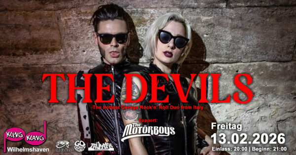 THE DEVILS das aktuell heißeste und angesagteste Garage Rock’n’Roll Duo aus Italien kommt am Freitag, 13.02.2026 ins KLING KLANG nach Wilhelmshaven.