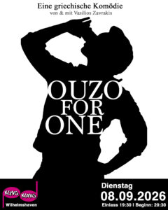 ‘Ouzo for One’ zu schreiben die logische Konsequenz”, erklärt Zavrakis. ”Wo sonst könnte ich meine Leidenschaften Musik, Schauspiel und Ouzo… ich meine, Griechisches Essen besser zusammenbringen?” – Na dann, Yiammas!