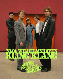 Mit ihrer neuen EP gehen Paloma & The Matches auf Tour und kommen am Freitag, 23.Januar 2026 ins Kling Klang nach Wilhelmshaven – eine Reise durch schimmernde Nostalgie, große Gefühle und filmreife Momente. Ihr Sound klingt, als könnte er direkt aus einem Tarantino-Film stammen: retro, charmant, ein bisschen gefährlich – mit funky Basslines, souligen Bläsern und einem Hauch psychedelischem Surf. Zwischen Herzklopfen und Melancholie erzählen die fünf Musiker:innen von Sehnsucht, Selbstzweifeln und kleinen Lichtblicken, die das Leben heller machen. Samtige Vocals, vierstimmige Harmonien und 60s-Flair treffen auf modernen Indie-Spirit – mal tanzbar, mal bittersüß. Die „Silver Lining Tour“ ist der Soundtrack für alle, die sich fallen lassen wollen – irgendwo zwischen Tagtraum, Tanzfläche und Kinoleinwand.